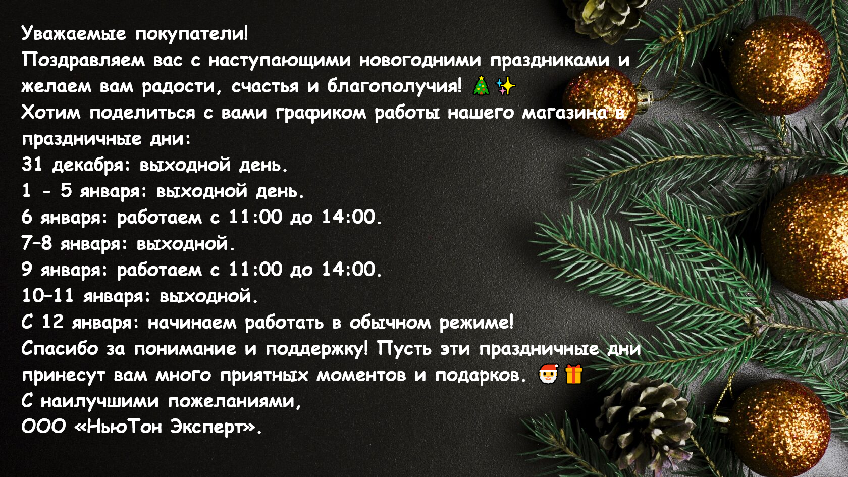 График работы в новогодние праздники
